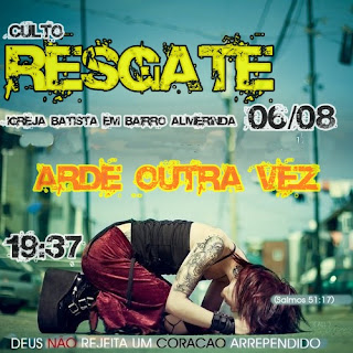 Há duas semanas passadas, entre alguns afazeres do dia a dia, acabei olhando as circunstâncias, e olhando essas circunstâncias veio à tristeza, com a tristeza me abati... mas sabe, quando temos Deus em nossas vidas, o Espírito Santo nos incomoda de tal forma, que simplesmente temos que parar... foi quando eu fiz aquela postagem “Está tudo truncado... Deus seja louvado” e naquele momento eu sentia exatamente o que diz esse tema do Resgate... eu queria, eu necessitada sentir essa presença de Deus arder em minha vida outra vez, mas entendia que para que isso acontecesse, eu precisava me disponibilizar, eu precisava dizer a Deus: Senhor, faz de mim vaso novo... arde em mim outra vez!